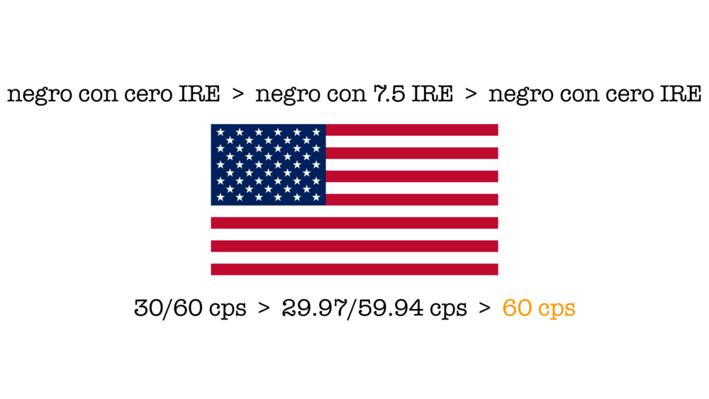 En 1941, el Comité Nacional del Sistema de Televisión estableció el primero de dos males «necesarios» con su sistema de televisión analógico en escala de grises (también conocido como «monocromático») con la norma EIA 170. Este comité (NTSC, por su sigla en inglés) lo creó la FCC (Comisión Federal de Comunicaciones) de los Estados Unidos el año anterior. Ambos acontecimientos tuvieron lugar mucho antes de la llegada de la televisión en color. En 1941, este Comité decidió que era «necesario» establecer una diferencia del 7,5 % (7,5 IRE) entre el intervalo de supresión vertical y el negro para garantizar que el ruido no causara que el nivel de negro se interpretara como un pulso de sincronización, y para ayudar a aliviar los problemas con los niveles de brillo del CRT (tubo de rayos catódicos)… e incluso evitar la posible explosión de los transmisores (esta última parte es una leyenda sin documentación). Los ingenieros japoneses se mostraron en total desacuerdo con esto y siempre mantuvieron el nivel de negro analógico en cero IRE para la transmisión de televisión japonesa, al igual que, mucho más tarde, hicieron todas las versiones de los sistemas de color PAL y SECAM. Afortunadamente, no recibimos ningún informe de explosión de transmisores de las estaciones de televisión japonesas ni tampoco de las estaciones de televisión PAL/SECAM, por lo que esas supuestas preocupaciones probablemente eran demasiado conservadoras o mitos. En otros detalles, la escala de grises original de la norma EIA 170 contaba con exactamente 60,00 campos por segundo o 30,00 cuadros por segundo. El segundo mal necesario llegó en 1953, cuando se manipuló la señal original de escala de grises para añadirle colores. A diferencia del primer mal mencionado anteriormente, que pudo haberse evitado (como nos demostró la televisión japonesa), el segundo mal era realmente necesario para alcanzar el objetivo: crear un sistema en color que fuera compatible con los televisores fabricados para la anterior norma EIA 170 de escala de grises. En ese momento, en 1953, la norma EIA 170 (con su sagrada frecuencia de campos de 60,00) se modificó a aproximadamente 59,94 campos por segundo y la sagrada frecuencia de 30,00 cuadros por segundo se cambió a aproximadamente 29,97 cuadros por segundo, como parte del nuevo sistema NTSC con colores agregados. Ésas dos primeras transiciones fueron dolorosas, pero se decidieron y se implementaron mucho antes de que yo naciera. El resto de este artículo trata de repasar cómo hicimos (y quizá estemos haciendo) la transición de regreso, primero para volver a la gama de luminancia completa de cero a 100 «IRE*» en la era digital, y segundo (opcionalmente) para volver exactamente a 60,00 cuadros por segundo. (Afortunadamente, los mundos de la televisión analógica PAL y SECAM se libraron de estos males «necesarios» y de las transiciones de ida y vuelta. Siempre tuvieron frecuencias constantes de 25,00/50,00 y negro en cero IRE, además de una mayor resolución espacial y una mejor congruencia de colores en comparación con el NTSC coloreado).